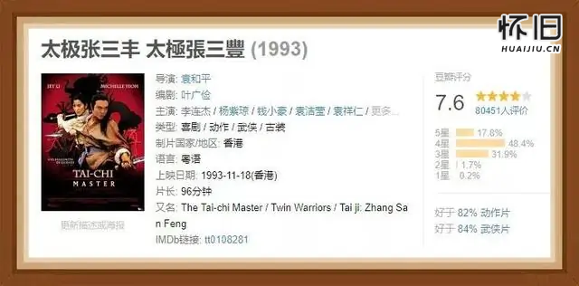 李连杰自幼习武,曾多次获得全国武术比赛冠军,踏入演艺圈之后主演的影片也以武侠片、功夫片居多,在李连杰众多作品中,《黄飞鸿》《笑傲江湖之东方不败》《英雄》等最为人所熟知。但是,小编个人认为,李连杰演绎生涯和武打戏的巅峰之作是另一部被低估的作品 ——《太极张三丰》。