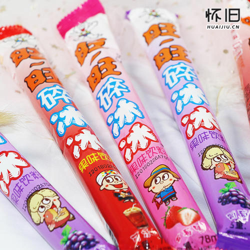这个现在超市还是有卖的,不过就是觉得没有小时候那个味道好吃了,记得小时候的时候,总是会在中间掰开,和自己的小伙伴一人一半,有时候还会冻着自己的小爪子,冰凉冰凉的,这个旺旺碎冰冰也是有很多口味的,可以根据自己的口味挑选颜色,一般粉红色的是草莓味的,绿色就是青苹果味的。