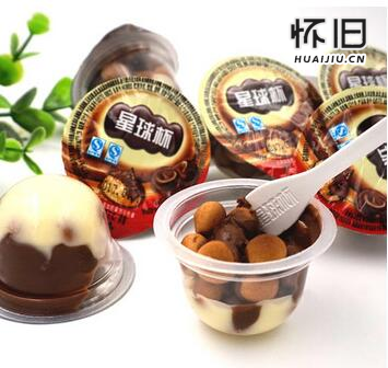 星球杯就是果冻包装的一种童年小零食,用小勺子挖着吃。口味:巧克力浆+饼干粒。配料:巧克力浆(植物油、砂糖、淀粉、牛奶粉、麦芽),饼干粒(小麦粉、植物油、砂糖、淀粉、牛奶粉、糖浆、食盐、蓬松剂、香兰素等)一桶星球杯有190杯,每个星球杯都有不同图案,集齐一定数量的图案寄到公司还有礼物赠送哦!这一点就非常讨小孩子喜欢!