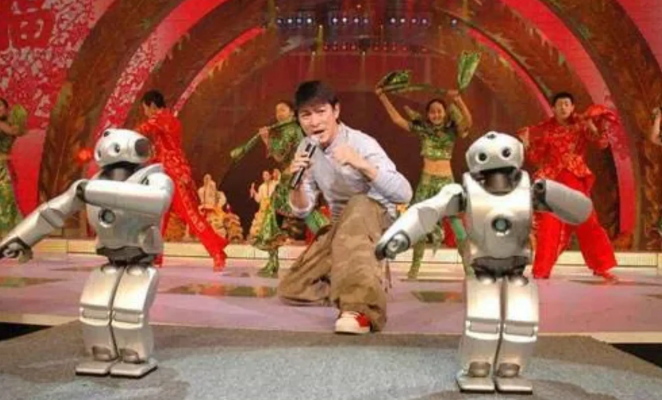 上图,2005年央视春节联欢晚会,天王刘德华登台演出,献唱《恭喜发财》。站在他旁边的两台伴舞机器人,来自索尼,据说演出过程中,全由樱花岛工程师操作演出,禁止人员观看学习,演出结束直接装箱带走,杜绝一切非必要接触。