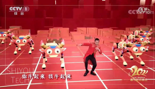 中图,2021年央视牛年春晚,刘德华再次登台献唱《牛起来》,参与伴舞的机器人方队,名叫犇犇,来自于宇树科技。四足机器人像活的小动物一样完成了整齐划一的动作表演,让人直呼神奇可爱。